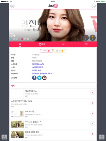 - 뉴스&검색 서비스 - 검지손가락으로 간편하게 내가 원하는 인기 연예인,운동선수를 찾는 기능을 제공합니다.