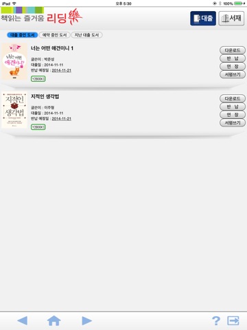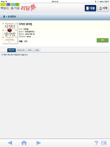 기업 통합 리딩락 대출회원으로 인증한 이용자를 대상으로 전자책 서비스를 제공합니다. 전자책을 검색, 대출하여 스마트폰을 통하여 언제 어디서든지 책읽기가 가능합니다.