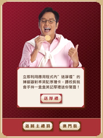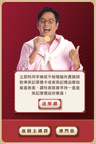 而家只要用手機或平板電腦嘅攝錄鏡頭掃描澳門英記餅家嘅《譚校長尋味之旅》廣告或宣傳品,擴增實境虛擬角色『譚校長』就會即時呈現眼前,仲會手持英記厚禮送你驚喜! 仲唔快啲下載《譚校長尋味之旅》?!! 記得同埋您嘅朋友分享啊!!