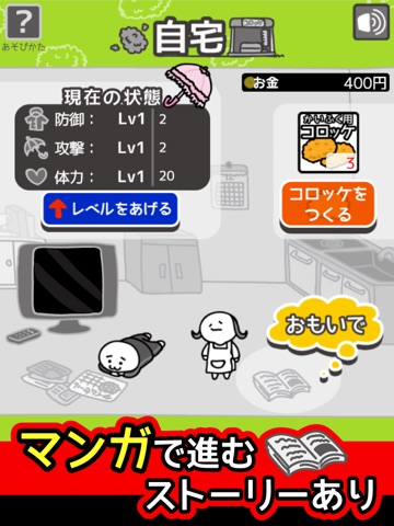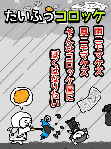 主人公(´・ω・)が台風の中、コロッケ配達をする横スクロールアクションRPG