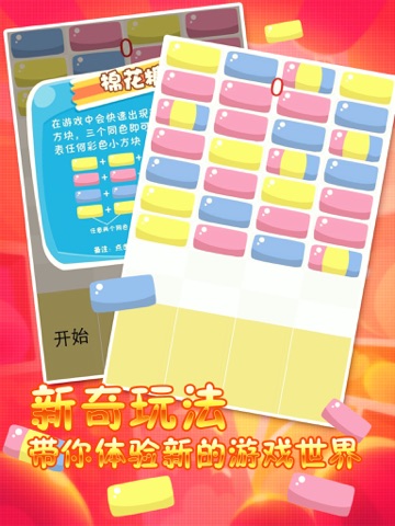 - [Marshmallow]: a fun challenge game. In the game will be a lot of fast color small box, you have to do is contact them at any one time in the end line to eliminate them.