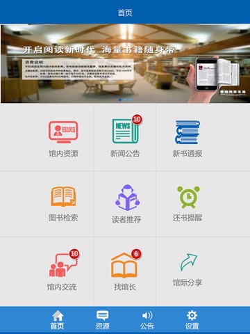 优知移动-优移动图书馆包含馆内资源,新闻公告,新书通报,图书检索,读者推荐,还书提醒,馆内交流,馆际分享等