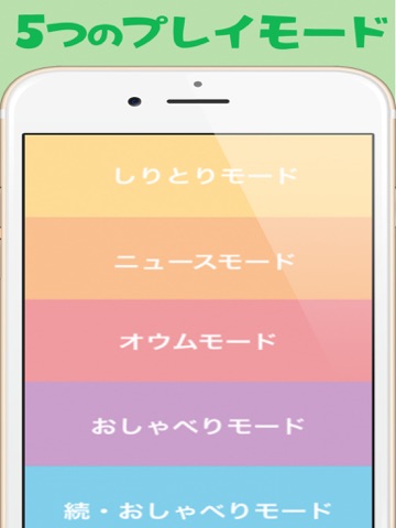 しりとりゲーム、ニュース読上げ、オウム返し、おしゃべりモード、続・おしゃべりモード