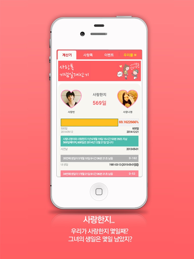 사랑톡 - 기념일 계산기, 사랑한지, 함께한지