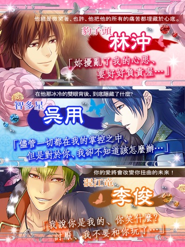 ◆原汁原味的故事:故事內容基於“水滸傳”,玩家可以享受來自“梁山”的英雄的戀愛體驗,與人物們建立友好關係。