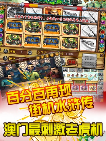 2014苹果APP Store娱乐场最受欢迎老虎机游戏,完美移植街机水浒传。全盘龙最高挑战10亿金币(价值:5万现金)。