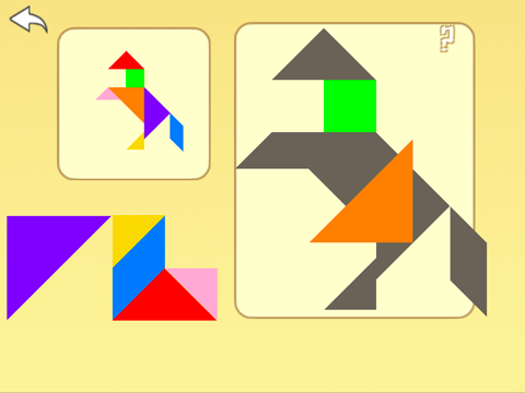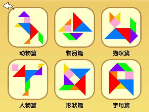 这是一个七巧板拼图游戏,包含200多种物品图案,可以在游戏的过程中认识世界。