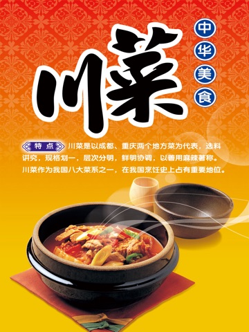川菜历史悠久,在国内外都享有很高的声誉。四川古称巴蜀之地,号称“天府之国”川菜是以成都、重庆两个地方菜为代表,选料讲究,规格划一,层次分明,鲜明协调,特点是突出麻、辣、香、鲜、油大、味厚,重用“三椒”(辣椒、花椒、胡椒)和鲜姜。