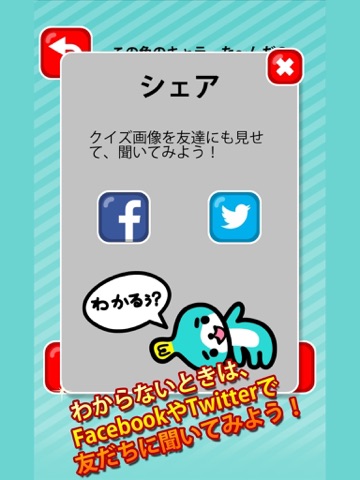 色だけではわからないとき、「ヒント」ボタンでヒントを見ることが出来るよ。