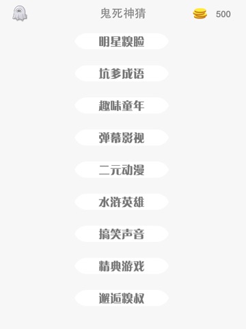 - 根据《鬼死神猜》提供的图片、音乐和提示内容,从备选文字中拼出正确答案。