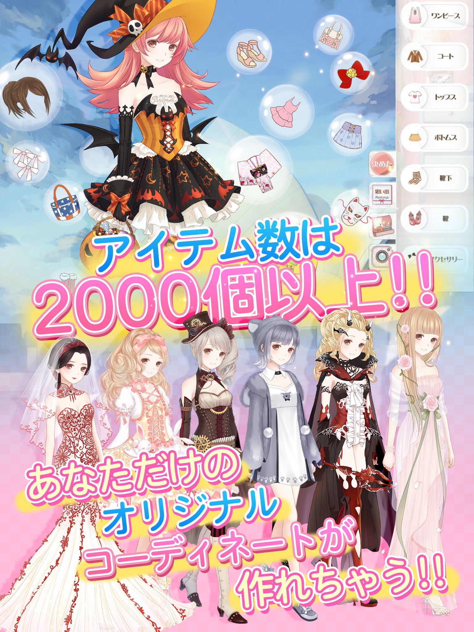 2,000個以上の洋服、ヘアスタイルからアクセサリーアイテムの中から選び放題!