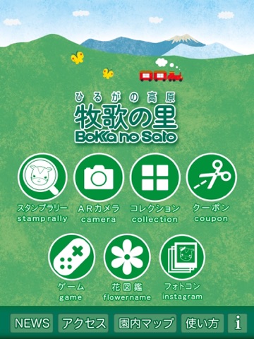 本アプリケーションは牧歌の里にご来園頂いた方々を対象にしたスタンプラリー形式のアプリケーションです。