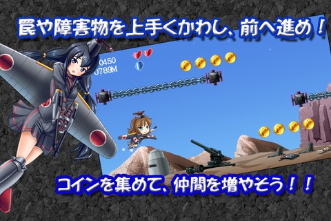 ・画面タップで戦闘機むすめが上昇し、指を離すと下降します。
