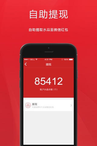 - 自助提现:快捷绑定微信红包,提现自助快捷。