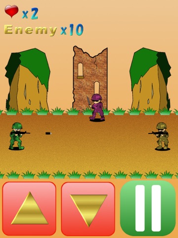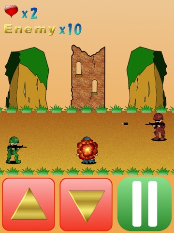 このゲームは敵の攻撃を画面下部にある上下のボタンで避け、敵を倒すというシンプルな戦場アクションゲームです。