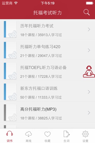2、支持离线学习,本地音频让你从此远离烦人的网络,真正实现离线学习,同时支持后台播放,随时随地播放,省电又省心 ;