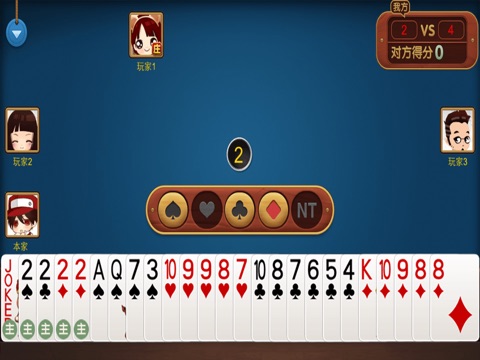 拖拉机是国内非常盛行的一种 4 人扑克牌游戏,该应用是2副牌的单机版拖拉机游戏,超高的电脑智能,绝对让你感觉是和真人在对战,画面精致,加入各种音效。无需登录,点击开始即可游戏。