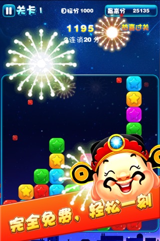 消灭星星喜庆版本,更加喜庆的气氛,升级了绚丽的烟花效果,轰隆的烟花声音,为你的2015春节添加浓烈的节日气氛。
