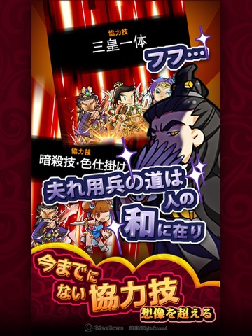 劉備の人間的魅力とは?桃園の誓いを結んだ三人の仲は一体どうなの...?魏蜀呉の武将たちの間にある、その友人でもあり敵でもある微妙な関係は?三国志演義では、そんな微妙な人間関係は要チェックです!本作では絆システムを搭載し、条件が揃うと、武将たちの協力技が発動されます。協力技の種類によって様々な効果があり、その中攻撃力増加やHP回復など特性の付く技も!?今までありそうでない機能、うまく組み合わせれば、強い敵も一撃で倒せます!