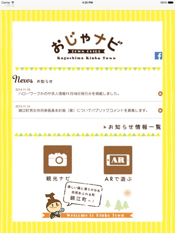 「おじゃナビ」は錦江町を100%楽しむアプリです。観光情報のご紹介やルート案内、AR(拡張現実)のコンテンツをお楽しみいただけます。