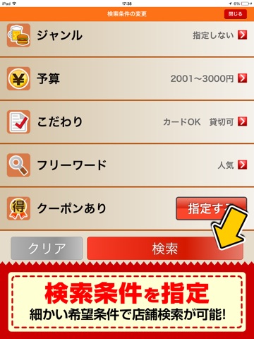 ・こだわり条件(個室あり、貸切可、ペット可など)で絞り込みが可能!