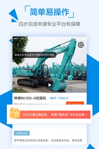 铁甲二手机—二手工程机械交易和服务平台,近600人的线下服务团队能够为来自全国各地的工程机械用户提供免费带看服务。