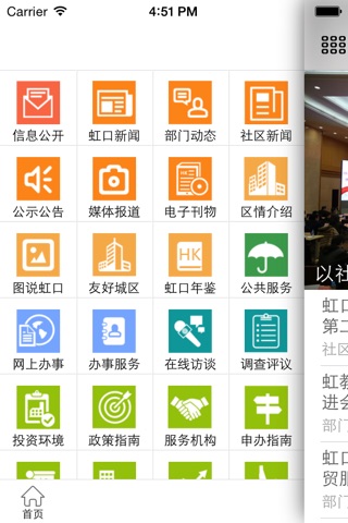 上海虹口微门户主要用于浏览上海虹口网站新闻信息,实现同上海虹口网站信息的同步阅读,包括信息公开,虹口新闻,部门动态,社区新闻,网上办事,办事服务,在线访谈等