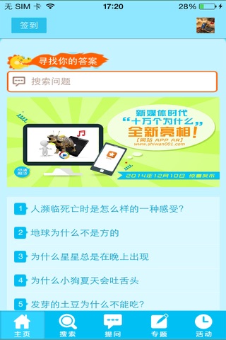 中国青少年科普第一品牌“十万个为什么”百科知识互动平台的移动客户端,海量问题等你来搜索、精彩专题等你来浏览、国内外顶尖科学家等你来提问、缤纷活动等你来体验。