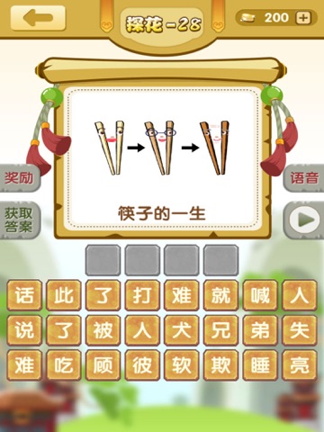 游戏每个关卡都有一个题目,认真听取语音然后选取底部的文字回答正确即可过关。