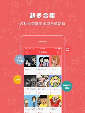 广受欢迎的经典色系漫画大鼻孔、科洛希姆、寡妇三代、四分钟料理、我色气歌、奇奇怪怪的漫画通通囊括在内!