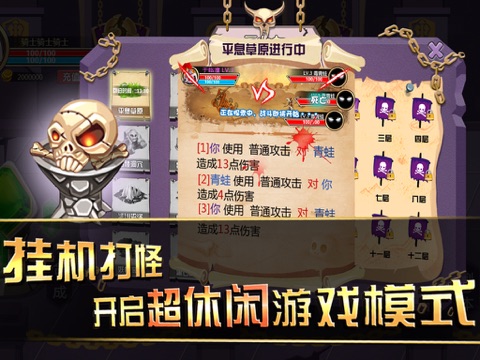 玩家只需要点击副本层数,开始战斗。就可以进行RPG模式操作,随着角色等级的提升,玩家能够挑战更高的副本获得更好的装备进行战斗。