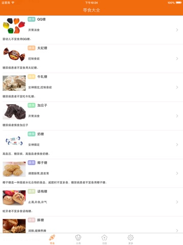 介绍410余种零食的营养价值与功效,介绍零食相关小常识,包括零食的营养价值、热量、功效、做法、适用人群、如何挑选、储存方法等,让您吃的健康,吃的放心。