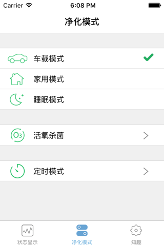 该App可以操控卡默空净进行模式选择,远程开关,以及启用活氧杀菌功能。