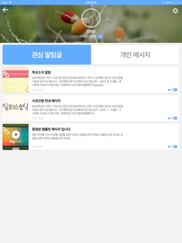 원광대학교 알리미를 통해 교내에서 수신되는 메세지를 PUSH 알림으로 받을 수 있습니다.