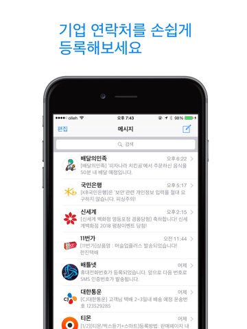 - 아이폰 6 이하 단말기에서는 메시지앱에서 아이콘이 표시되지 않습니다.