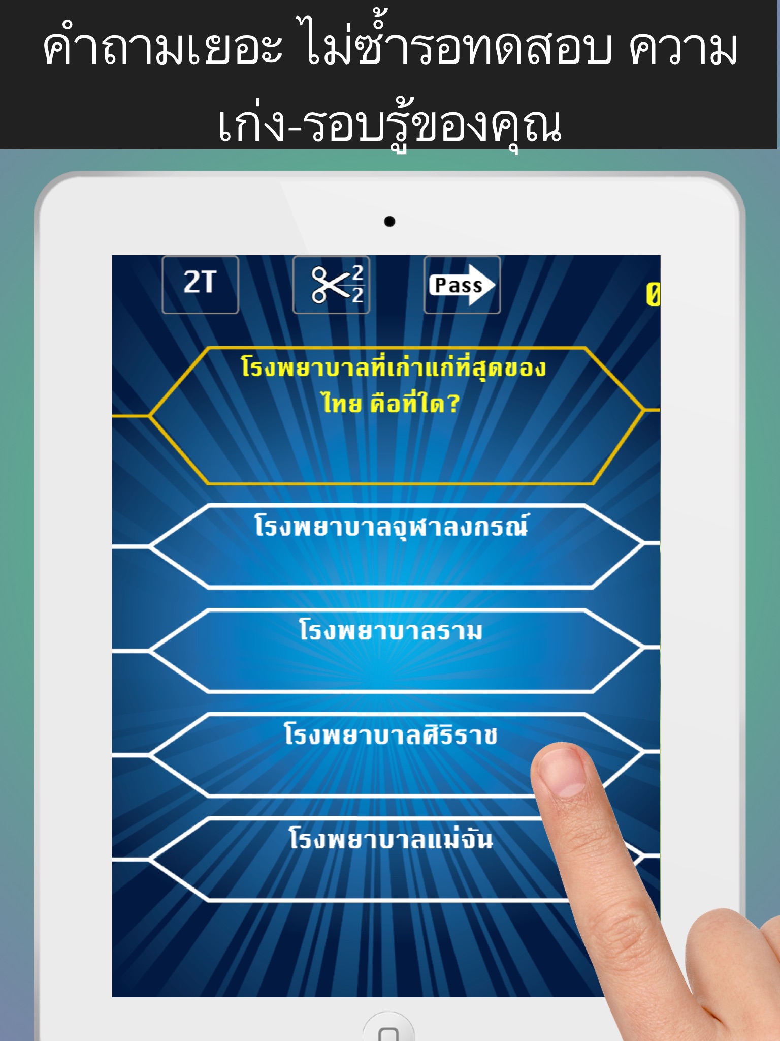 สนุกไปพร้อมกับ ได้ความรู้-ทดสอบความรู้รอบตัว เกี่ยวกับประเทศไทยของคุณ คำถามยาก-ง่าย คละเคล้ากันไปเพื่อทดสอบ และเพิ่มพูน ความรู้ของคุณ