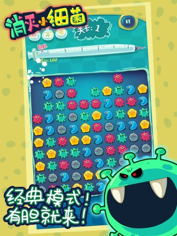 《消灭小细菌经典版》是独立开发的一款经典消除游戏,细腻精美的游戏画面,精心制作的游戏配乐,上手简单休闲有趣,多种好玩的游戏模式,绝对让您爱不释手!