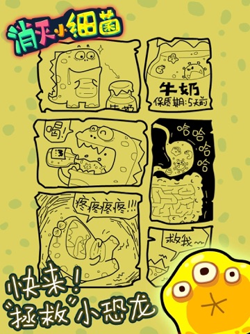大家赶快一起来帮助小恐龙,赶走这些“萌萌的小细菌”吧!