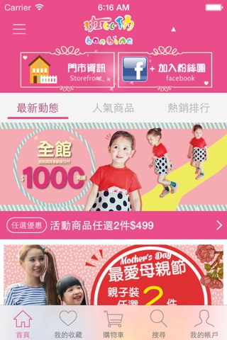 讓您一手掌握最新流行童裝穿搭及優惠通知,貼心的行動購物介面,方便您隨時線上查看店內新品。