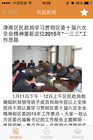 “天津民政”是天津市民政局官方手机客户端。该客户端的开发旨在进一步加强信息公开,为公众获取民政信息和服务提供更加便捷的渠道。用户通过该客户端可实现随时查看最新的民政新闻,查找天津民政局内设机构,并提供民政系统下相关服务应用的下载。