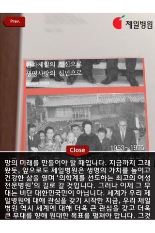대한민국 최고의 여성 전문병원인 제일병원의 50년사와 브로슈어에 대한 증강현실 어플리케이션 입니다.