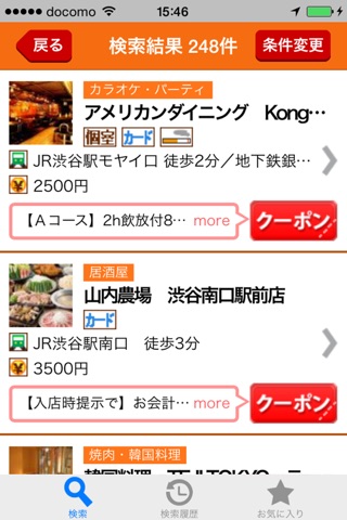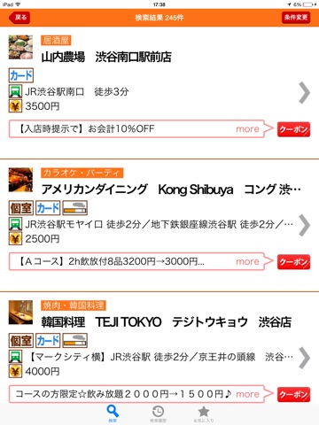 ・履歴検索、お気に入り機能も完備。別の日に見ても、気に入ったお店がすぐ見つかります
