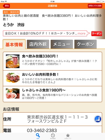 ・お店の詳細情報が充実!クーポンボタンがいつでも見やすい!