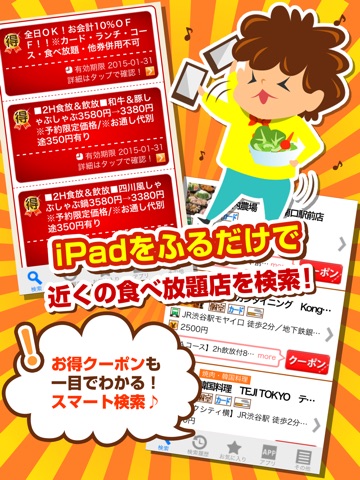 アプリを起動して振るだけでお近くの食べ放題付き