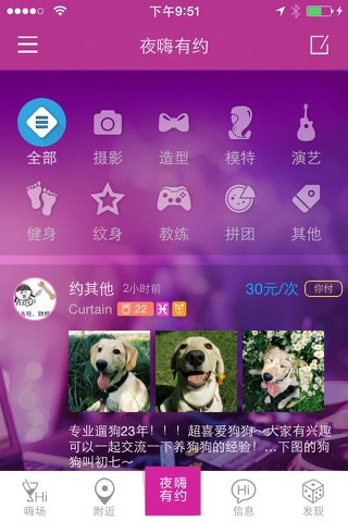 夜嗨是一款超嗨的夜间娱乐约会软件,好玩、好约就是主题!