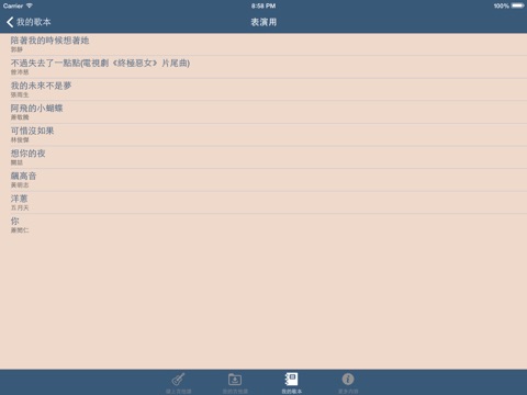自己的歌單自己做!將要表演的歌全部新增到同一個歌單,只需要輕輕一滑,下一首馬上出現,不用再大費氣力找譜了!