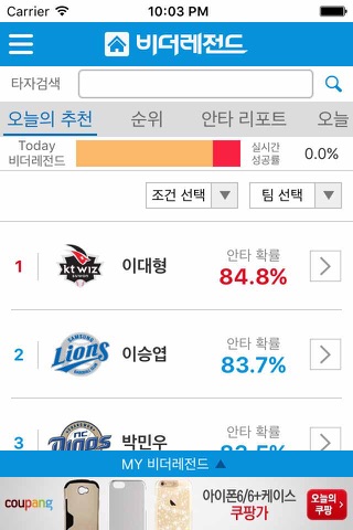 KBO 공식기록업체인 스포츠투아이㈜가 분석한 오늘 경기에서 안타 확률이 가장 높은 10명을 추천합니다.