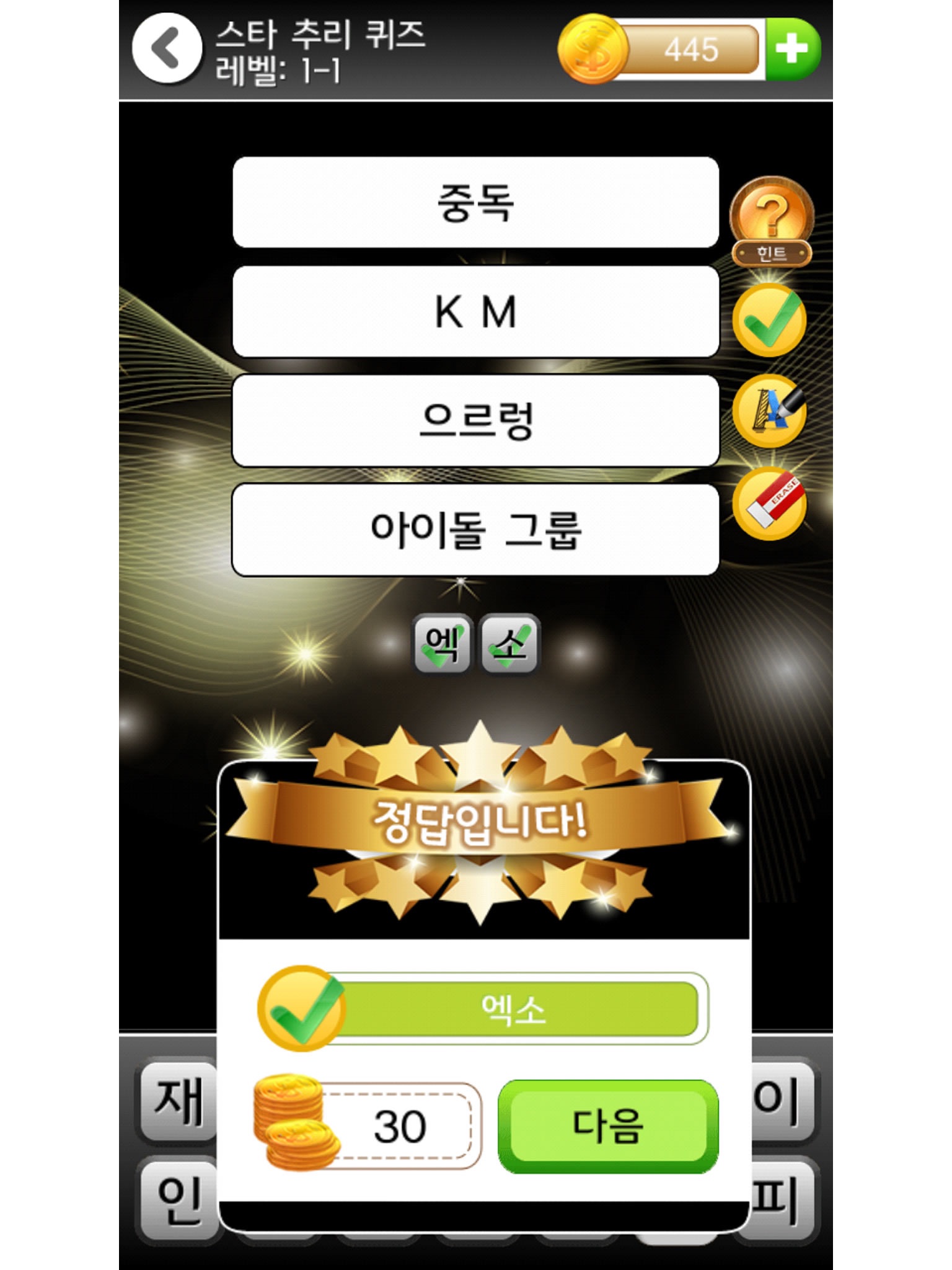 인기있는 연예인들을 맞히는 앱입니다. 최소의 단서를 보고 스타들을 맞춰보세요~