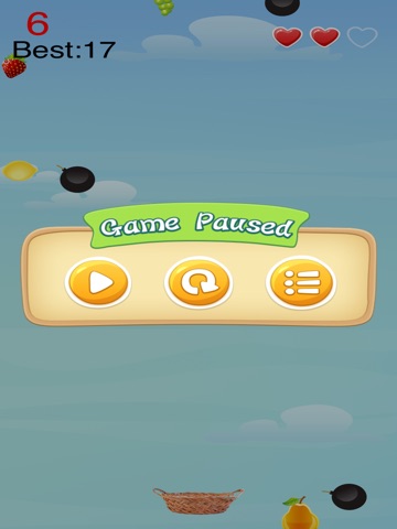 游戏使用重力感应控制水果筐水平移动,当你的iPhone平行于地面时,水果筐停止移动,当你横向倾斜iPhone时候,水果筐将向你倾斜的方向水平移动。