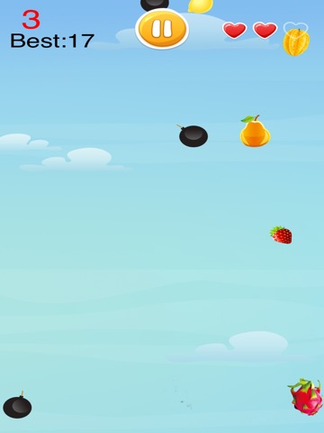尽可能的接更多的水果,天上不只有水果哦,还有恐怖的炸弹,躲避他们,不然筐炸没有了就没法接水果了。